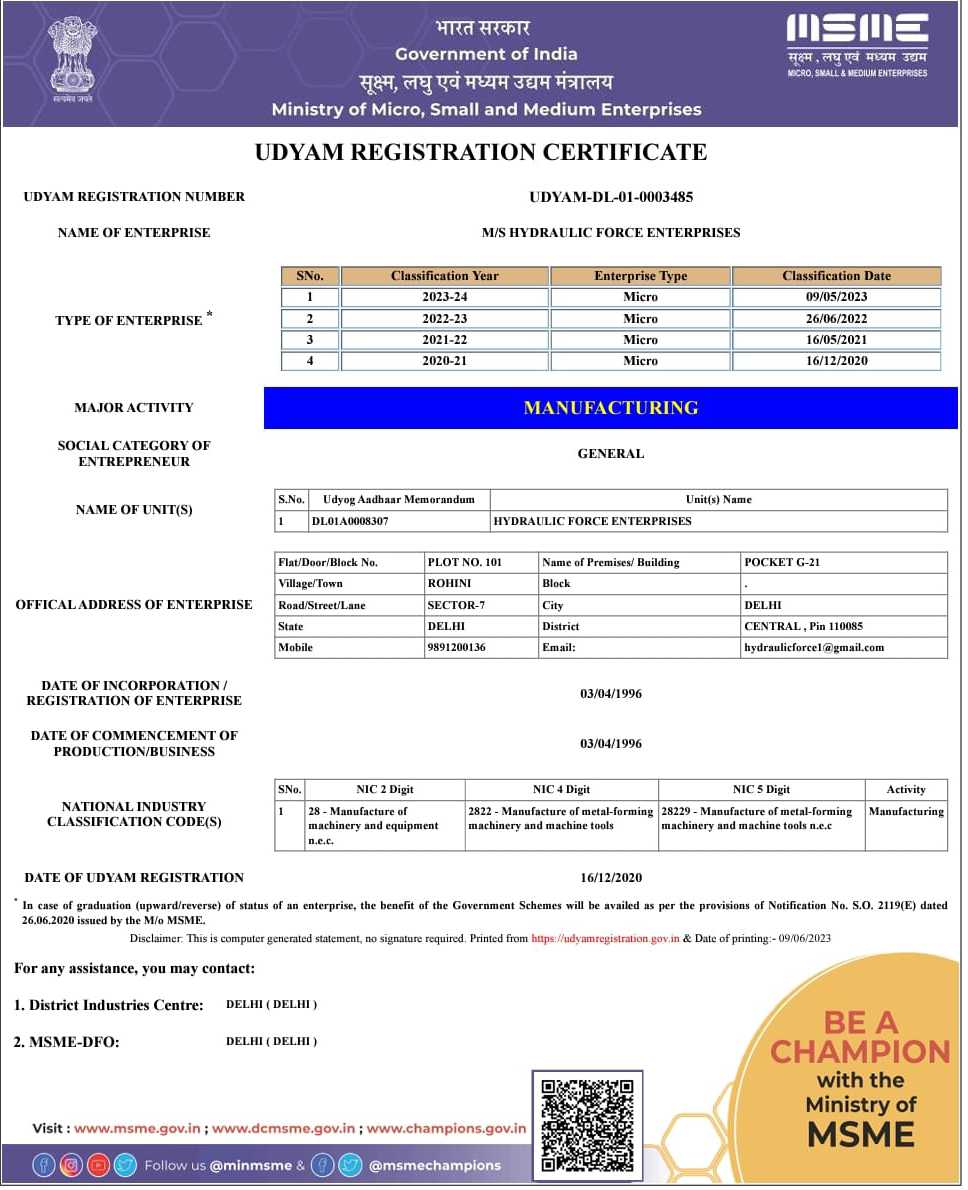 Hydraulic Force Enterprises, established in 1996, stands as a leading manufacturer, exporter, and supplier of high-quality hydraulic equipment and transmission line stringing tools. With over two decades of experience, we have built a solid reputation for reliability, innovation, and customer satisfaction.